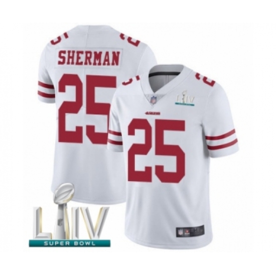 >Men's San Francisco 49ers #25 Richard Sherman White Vapor Untouchable Limited Player Super Bowl LIV Bound Football Jersey
