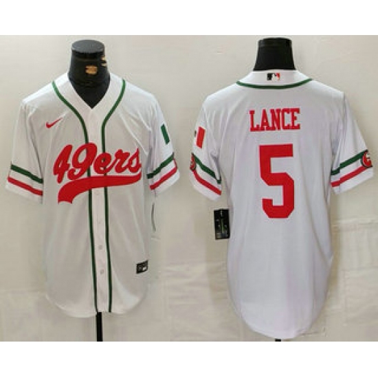 Men's San Francisco 49ers #5 Trey Lance White Mexico Cool Base Stitched Baseball Jersey