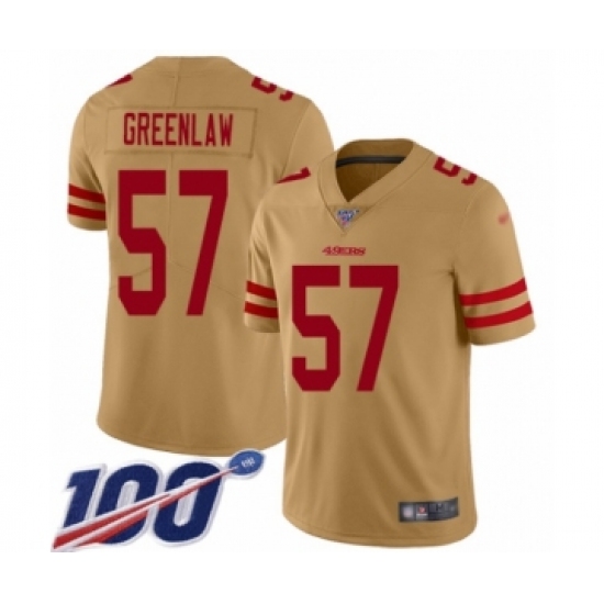 >Men's San Francisco 49ers #57 Dre Greenlaw Limited Gold Inverted Legend 100th Season Football Jersey