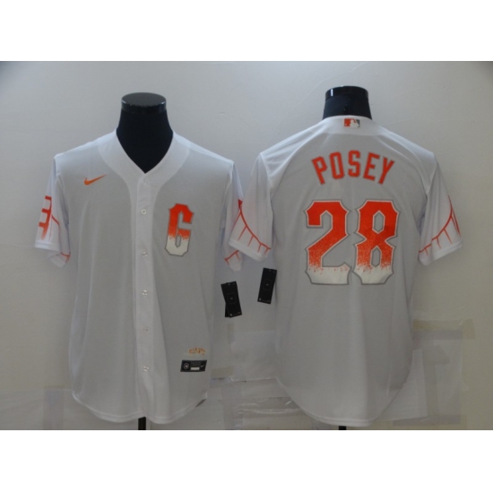 Men's San Francisco Giants #28 Buster Posey Nike White 2021 City Connect Replica Player Jersey