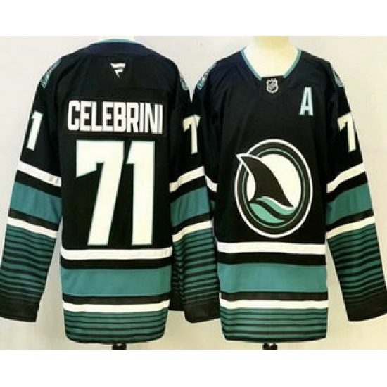 Men's San Jose Sharks #71 Macklin Celebrini Black 2024-25 Alternate Stitched Hockey Jersey