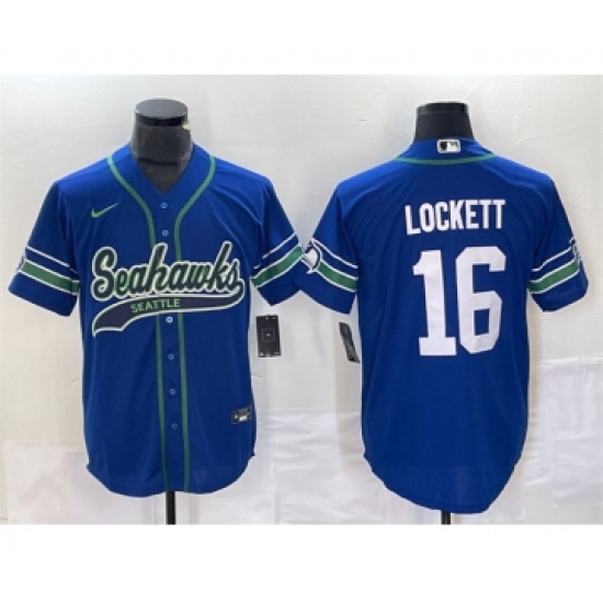 Men's Seattle Seahawks #16 Tyler Lockett Royal Throwback Cool Base Stitched Baseball Jersey