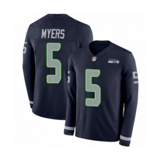 Men's Seattle Seahawks #5 Jason Myers Limited Navy Blue Therma Long Sleeve Football Jersey