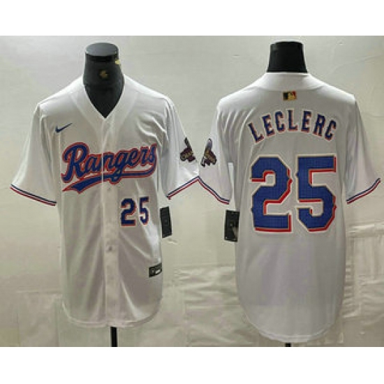 Men's Nike Texas Rangers #25 Jose Leclerc White Home Stitched Baseball Jersey