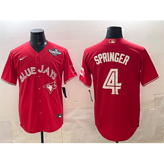 >Men's Toronto Blue Jays #4 George Springer Red 2025 World Series Cool Base Stitched Baseball Jersey
