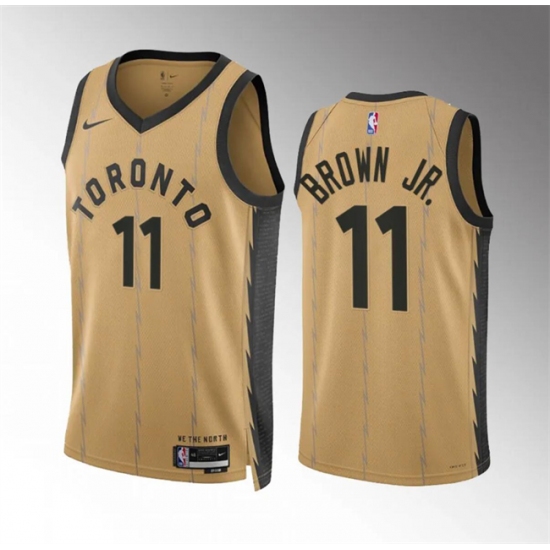 Men's Toronto Raptors #11 Bruce Brown Jr Gold 2023-24 City Edition Stitched Basketball Jersey