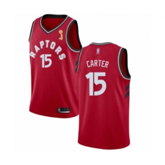 >Men's Toronto Raptors #15 Vince Carter Swingman Red 2019 Basketball Finals Champions Jersey - Icon Edition