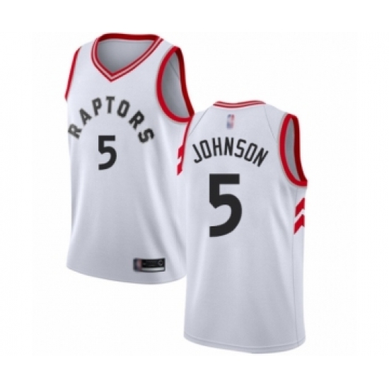 >Men's Toronto Raptors #5 Stanley Johnson Authentic White Basketball Jersey - Association Edition