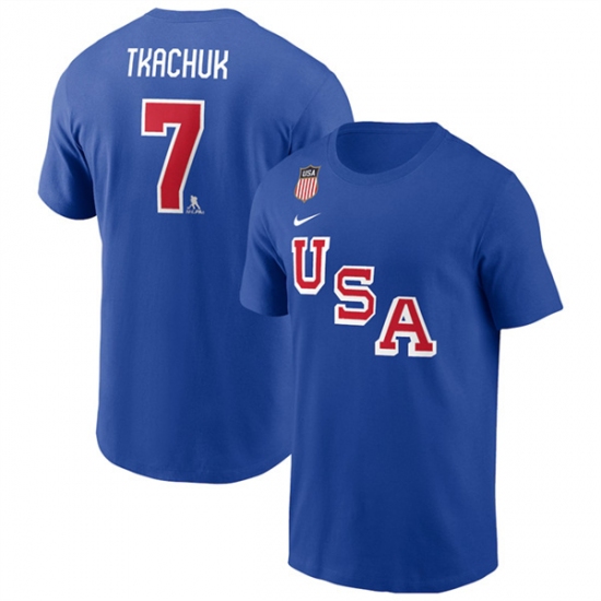 >Men's US Hockey #7 Brady Tkachuk Royal 2026 Name & Number T-Shirt