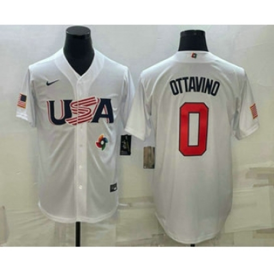 Men's USA Baseball #0 Adam Ottavino 2023 White World Baseball Classic Stitched Jersey