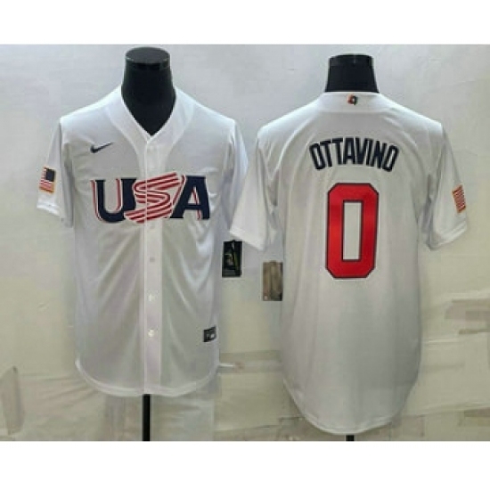 Men's USA Baseball #0 Adam Ottavino 2023 White World Baseball Classic Stitched Jerseys
