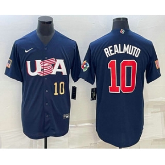 >Men's USA Baseball #10 JT Realmuto Number 2023 Navy World Baseball Classic Stitched Jerseys