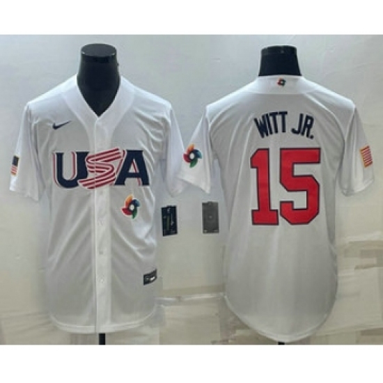 >Men's USA Baseball #15 Bobby Witt Jr Number 2023 White World Baseball Classic Replica Stitched Jersey1