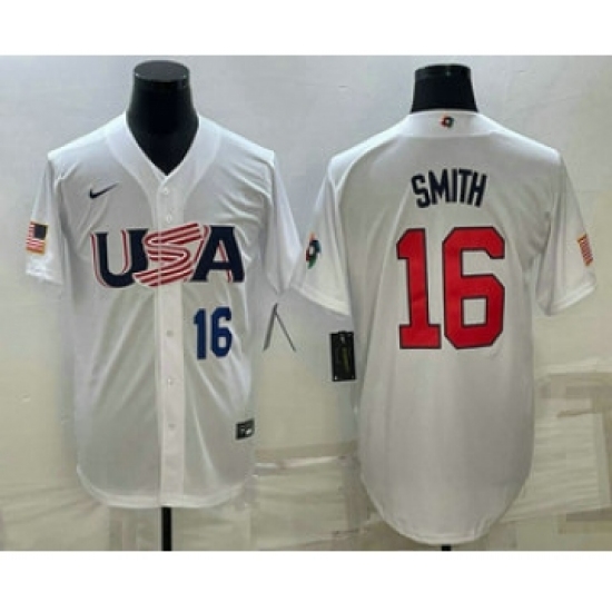 >Men's USA Baseball #16 Will Smith Number 2023 White World Baseball Classic Stitched Jersey