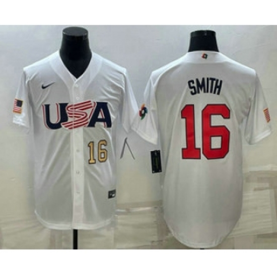 >Men's USA Baseball #16 Will Smith Number 2023 White World Baseball Classic Stitched Jerseys