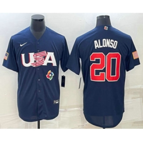 Men's USA Baseball #20 Pete Alonso 2023 Navy World Baseball Classic Stitched Jerseys