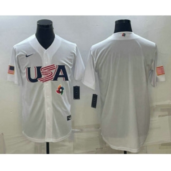 >Men's USA Baseball 2023 White World Baseball Blank Classic Replica Stitched Jersey
