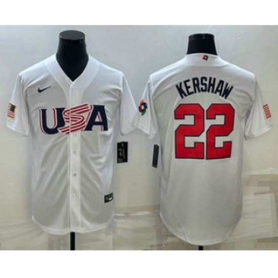 Men's USA Baseball #22 Clayton Kershaw 2023 White World Baseball Classic Stitched Jerseys