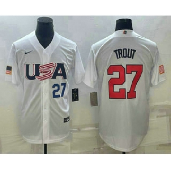 Mens USA Baseball #27 Mike Trout Number 2023 White World Baseball Classic Replica Stitched Jersey