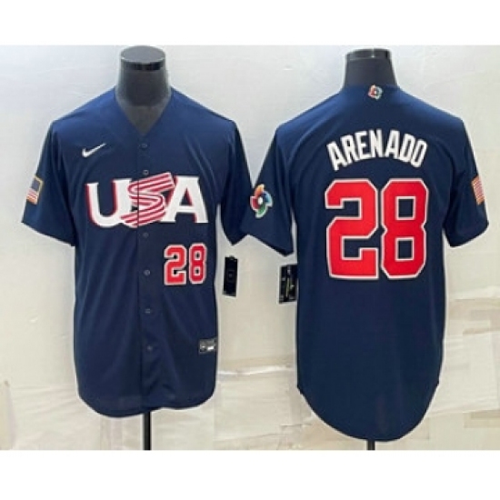 Men's USA Baseball #28 Nolan Arenado Number 2023 Navy World Baseball Classic Stitched Jersey