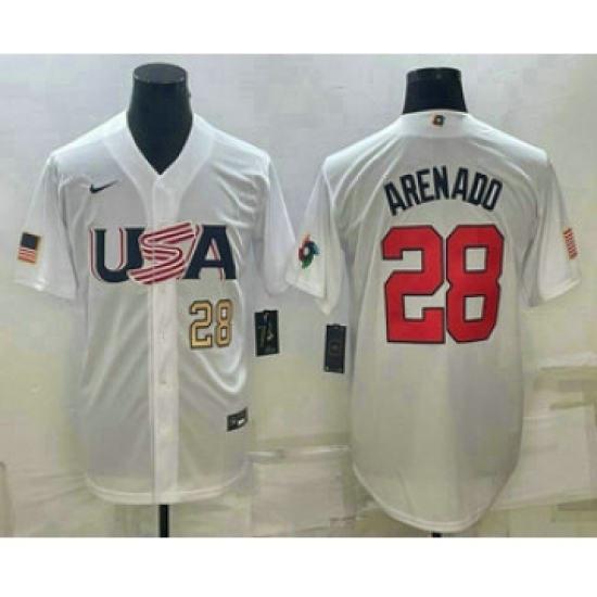 Men's USA Baseball #28 Nolan Arenado Number 2023 White World Baseball Classic Replica Stitched Jersey