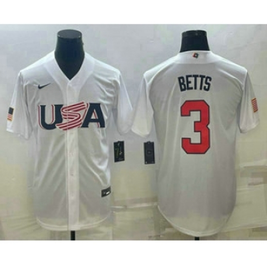 Men's USA Baseball #3 Mookie Betts 2023 White World Baseball Classic Replica Stitched Jersey
