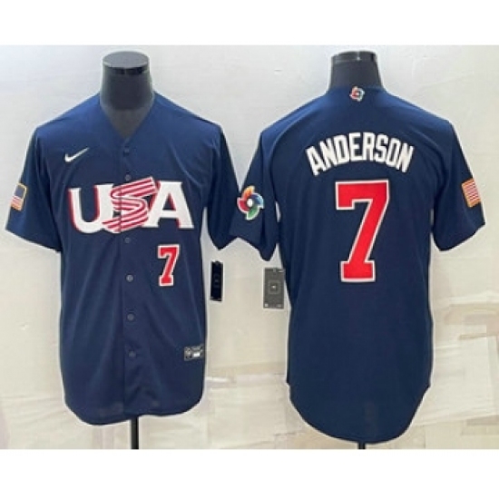 >Men's USA Baseball #7 Tim Anderson Number 2023 Navy World Baseball Classic Stitched Jerseys