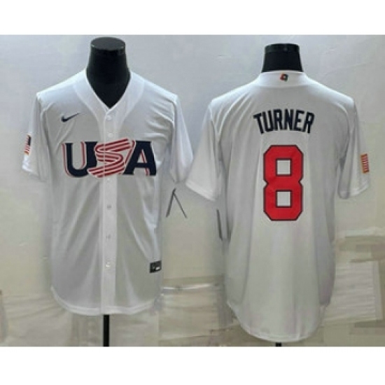 Men's USA Baseball #8 Trea Turner 2023 White World Baseball Classic Stitched Jersey