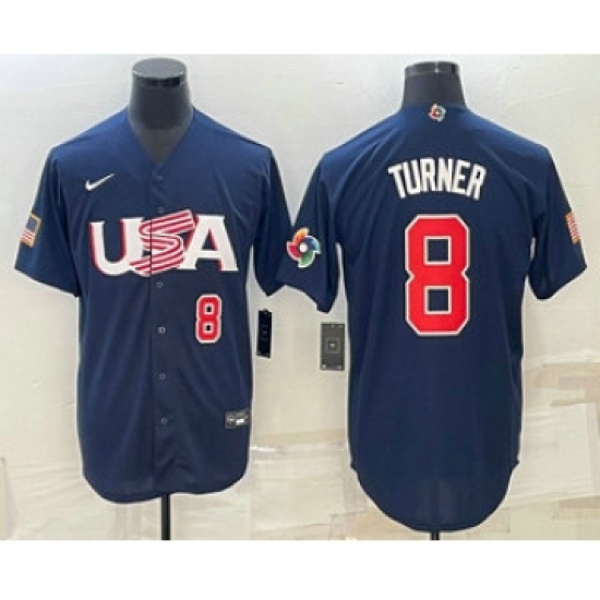 >Men's USA Baseball #8 Trea Turner Number 2023 Navy World Baseball Classic Stitched Jerseys