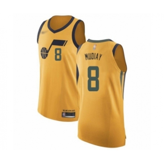Men's Utah Jazz #8 Emmanuel Mudiay Authentic Gold Basketball Jersey Statement Edition