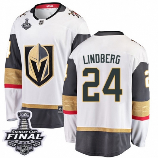 Men's Vegas Golden Knights #24 Oscar Lindberg Authentic White Away Fanatics Branded Breakaway 2018 Stanley Cup Final NHL Jersey