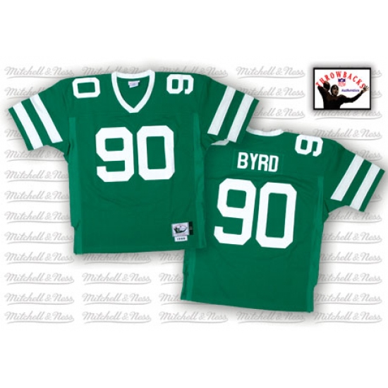 Feel like part of your favorite team by wearing this NFL® Mitchell and Ness New York Jets #90 Dennis Byrd Green Team Color Authentic Throwback NFL Jersey, made of thick, high-quality Pro-Brite fabric for a genuine gridiron look. The players number which 100% stitched is displayed in tackle twill on the chest, back and sleeves, along with the team name on the front. The players name which 100% stitched is displayed on a sewn-down nameplate at the back. 100% Pro-Brite nylon and 100% Pro-Brite polyester for body, 100% lycratalic spandex dazzle for Side Panels/Collar/Cuffs, NFL® Equipment patch sewn on the bottom of the front collar or fabric insert, NFL® Equipment jock tag with numeric sizing is applied to the lower left bottom of the jersey, Officially licensed.