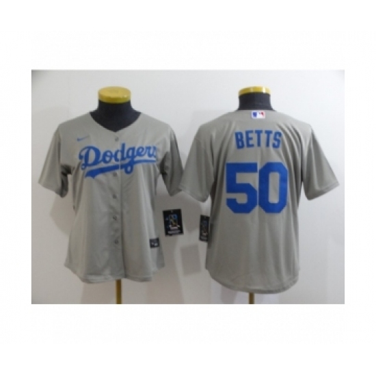 >Women Los Angeles Dodgers #50 Mookie Betts Royal Gray 2020 Cool Base Jersey