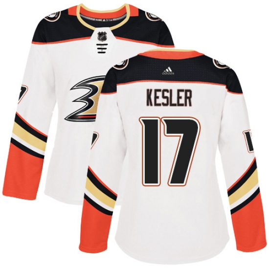 >Women's Adidas Anaheim Ducks #17 Ryan Kesler Authentic White Away NHL Jersey