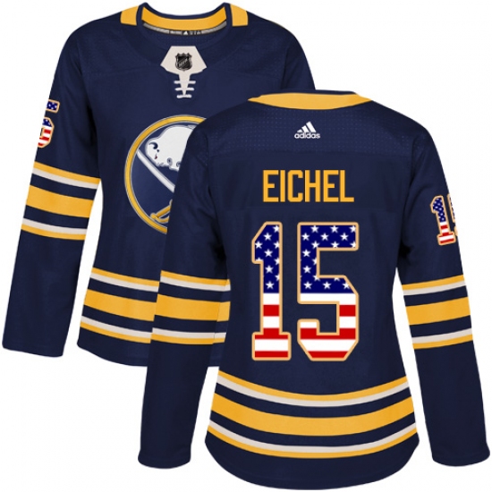 Home>NHL>Buffalo Sabres>Jack Eichel>Women's Adidas Buffalo Sabres #15 Jack Eichel Authentic Navy Blue USA Flag Fashion NHL Jersey