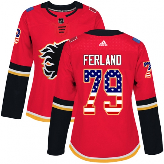 Home>NHL>Calgary Flames>Michael Ferland>Women's Adidas Calgary Flames #79 Michael Ferland Authentic Red USA Flag Fashion NHL Jersey