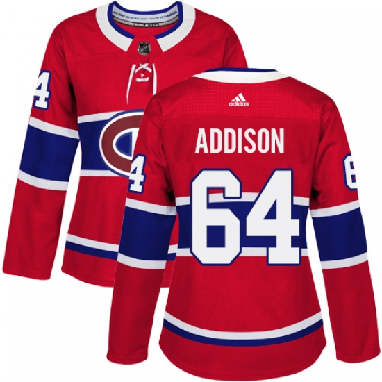 Home>NHL>Montreal Canadiens>Jeremiah Addison>Women's Adidas Montreal Canadiens #64 Jeremiah Addison Premier Red Home NHL Jersey