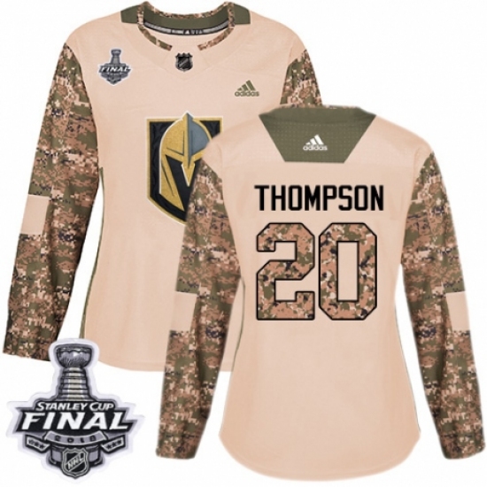 >Women's Adidas Vegas Golden Knights #20 Paul Thompson Authentic Camo Veterans Day Practice 2018 Stanley Cup Final NHL Jersey