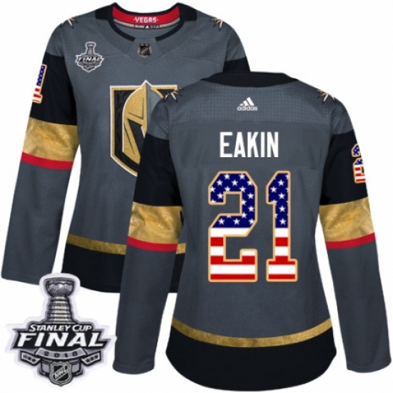 Women's Adidas Vegas Golden Knights #21 Cody Eakin Authentic Gray USA Flag Fashion 2018 Stanley Cup Final NHL Jersey