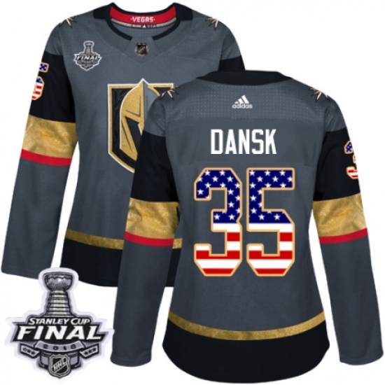 Women's Adidas Vegas Golden Knights #35 Oscar Dansk Authentic Gray USA Flag Fashion 2018 Stanley Cup Final NHL Jersey