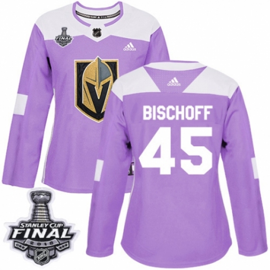 >Women's Adidas Vegas Golden Knights #45 Jake Bischoff Authentic Purple Fights Cancer Practice 2018 Stanley Cup Final NHL Jersey