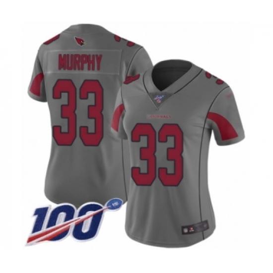 Women's Arizona Cardinals #33 Byron Murphy Limited Silver Inverted Legend 100th Season Football Jersey