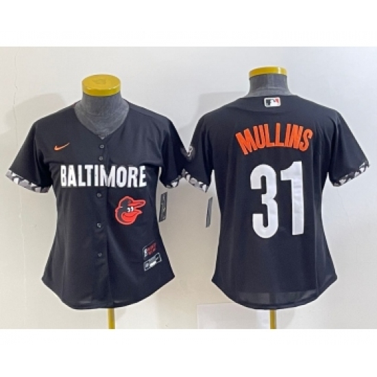 >Women's Baltimore Orioles #31 Cedric Mullins Black 2023 City Connect Cool Base Stitched Jersey 1