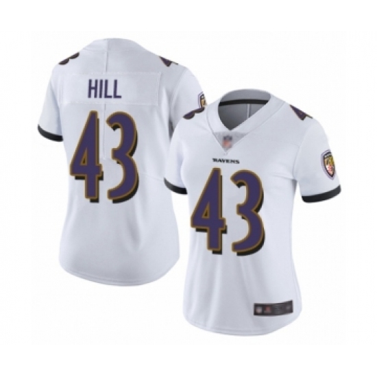 >Women's Baltimore Ravens #43 Justice Hill White Vapor Untouchable Limited Player Football Jersey
