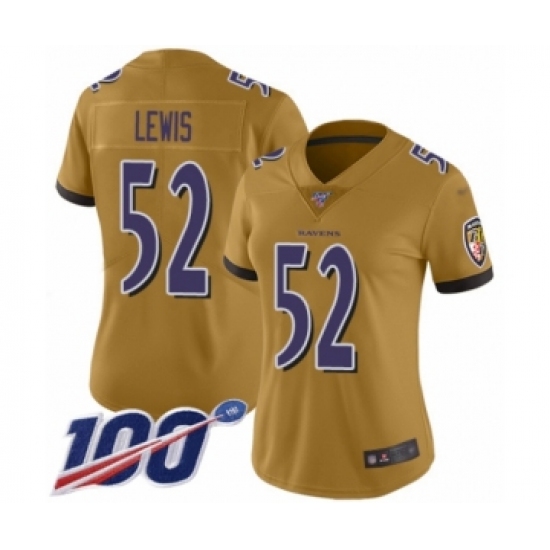 Women's Baltimore Ravens #52 Ray Lewis Limited Gold Inverted Legend 100th Season Football Jersey
