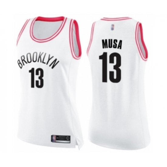 >Women's Brooklyn Nets #13 Dzanan Musa Swingman White Pink Fashion Basketball Jersey