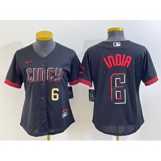 Women's Cincinnati Reds #6 Jonathan India Number Black 2023 City Connect Cool Base Stitched Jersey