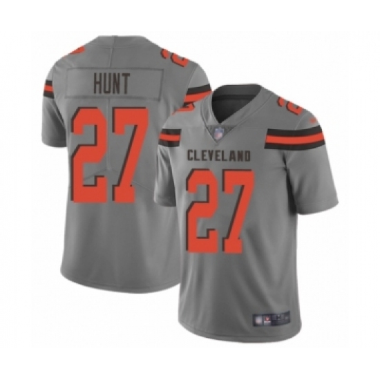 Men's Cleveland Browns #27 Kareem Hunt Limited Gray Inverted Legend 100th Season Football Jersey