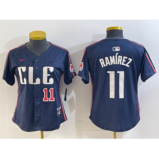 >Women's Cleveland Guardians #11 Jose Ramirez Number Navy 2024 City Connect Limited Stitched Jerseys