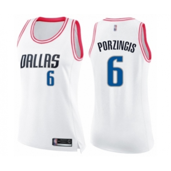 >Women's Dallas Mavericks #6 Kristaps Porzingis Swingman White Pink Fashion Basketball Jerse